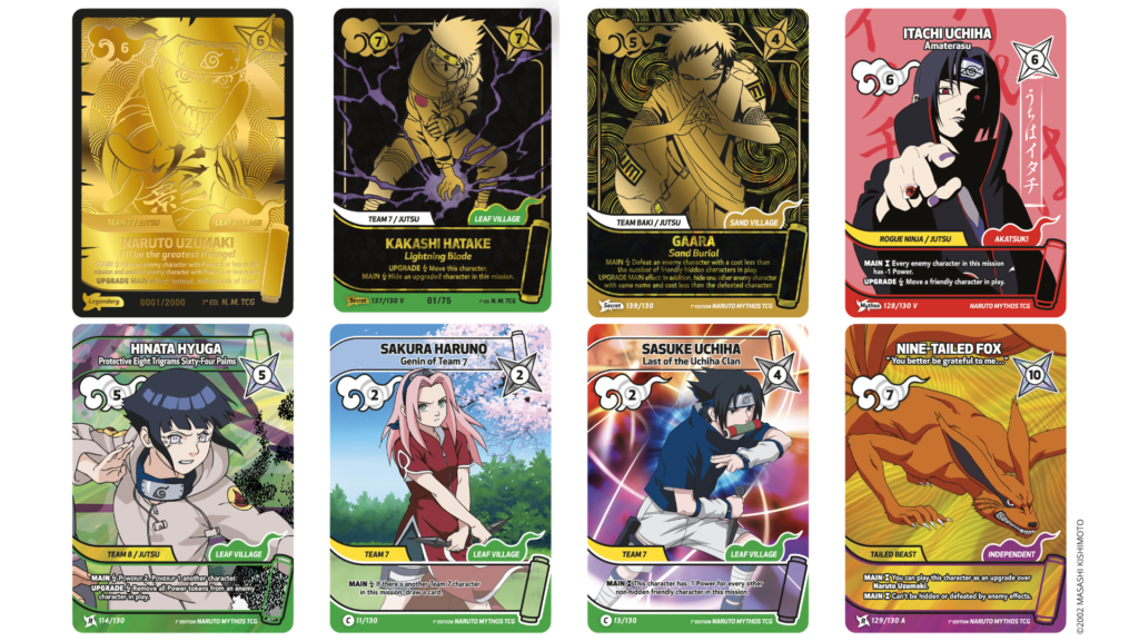 Découvrez les premières cartes dévoilées, un guide de collection et le livret avec les règles officielles du jeu sur narutotcgmythos.com. Vous trouverez également plus d’informations sur les événements à venir sur le site web.