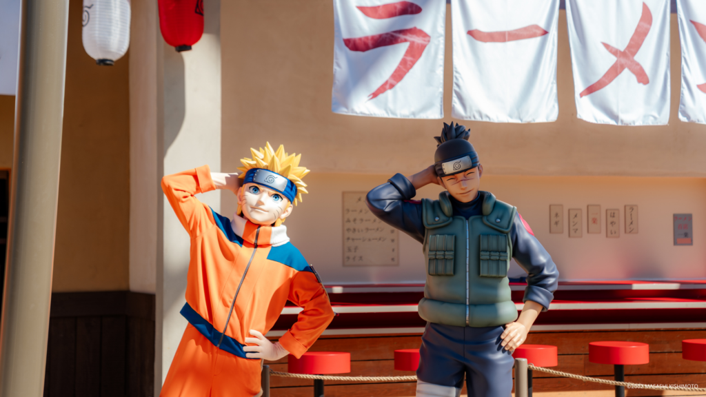 Pour combler une petite faim, faites une pause dans l’un des deux restaurants à thème avec une sélection de saveurs inspirées du Japon, où vous pourrez déguster les célèbres ramen Ichiraku 🍜, ainsi que d’autres spécialités comme le bubble tea 🧋, les mochi 🍡 ou les crêpes japonaises 🥞